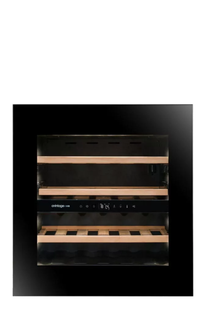 Kétzónás beépített borhűtő standard 60 cm-es szekrényhez, teljes kapacitás 24 palack (felső: 13, alsó: 11), 3 rétegű, edzett, szürke üvegajtó fekete kerettel és Push to Open ajtóval, hőmérséklet tartomány: 5-12 °C (felső zóna), 12-20 °C (alsó zóna), LED világítás be-/kikapcsolóval, állítható intenzitás és hőmérséklet, fehér kijelző, kompatibilis a Vinotag alkalmazással, elektronikus hőmérséklet-szabályozás, rezgéscsillapító rendszer, természetes páratartalom-szabályozás, automatikus leolvasztás, F energiaosztály - éves energiafogyasztás: 101 kWh, zajszint: 37 dB(A), méretek (Ma x Szé x Mé): 59,5 x 59 x 56 cm https://eprel.ec.europa.eu/screen/product/refrigeratingappliances2019/1790559 https://eprel.ec.europa.eu/fiches/refrigeratingappliances2019/Fiche_1790559_HU.pdf