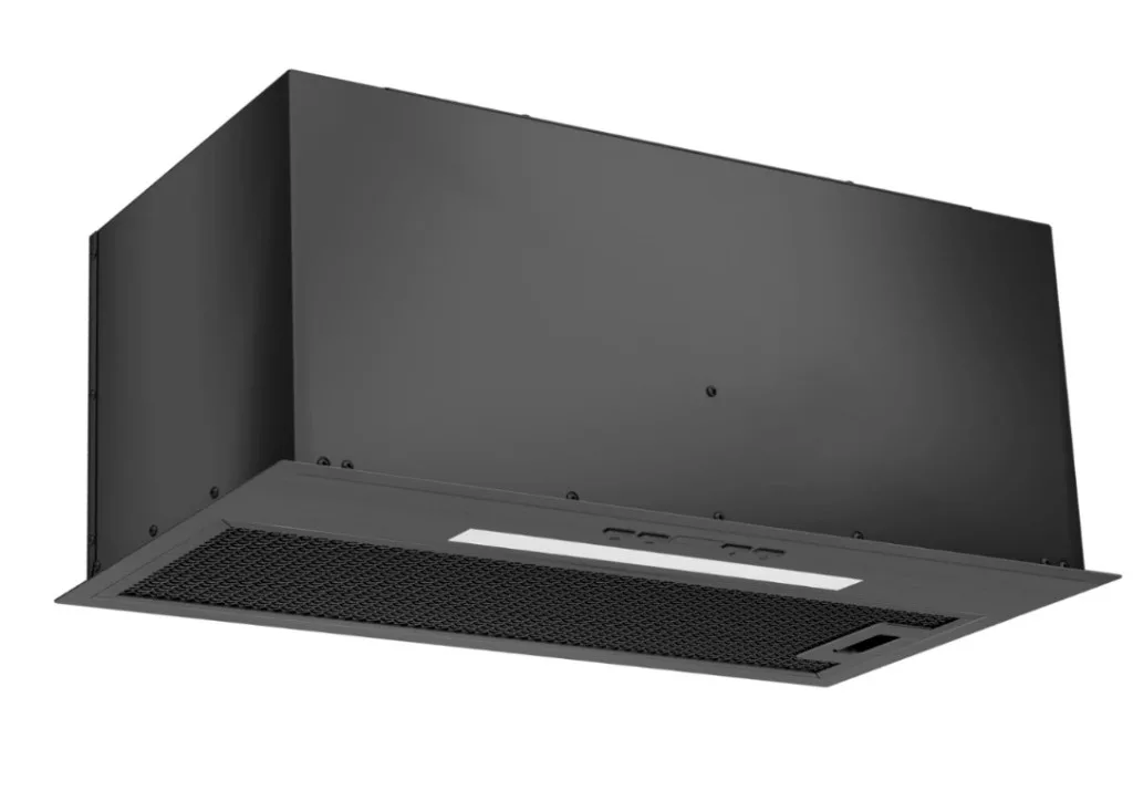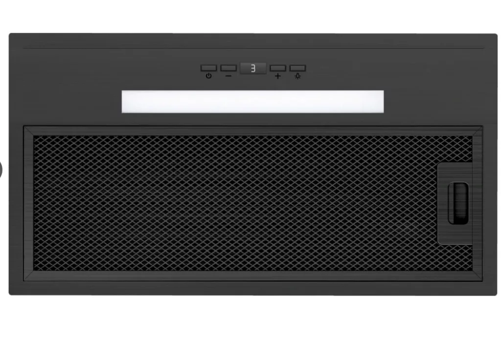 Beépített 60 cm-es matt fekete páraelszívó, max. Légszállítás: 320 m3/h, zajszint: 47-61 dB(A), 3 elszívási fokozat, 1x LED szalag, érintésmentes vezérlés kijelzővel + távirányító, elszívási és keringtetéses üzemmódra is alkalmas, 2 db-os aktív szénszűrő készlet FR-0846