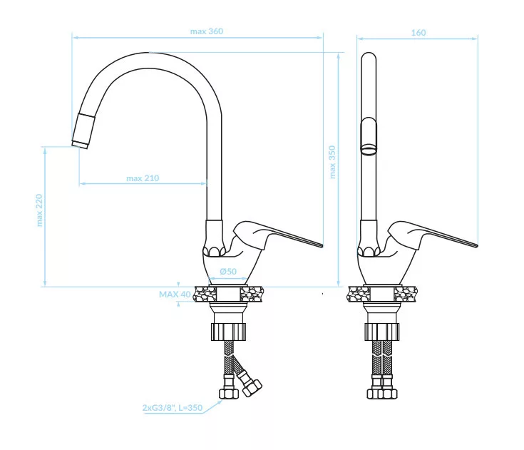 LAVEO ELZA F álló csaptelep rugalmas tömlővel, matt fekete