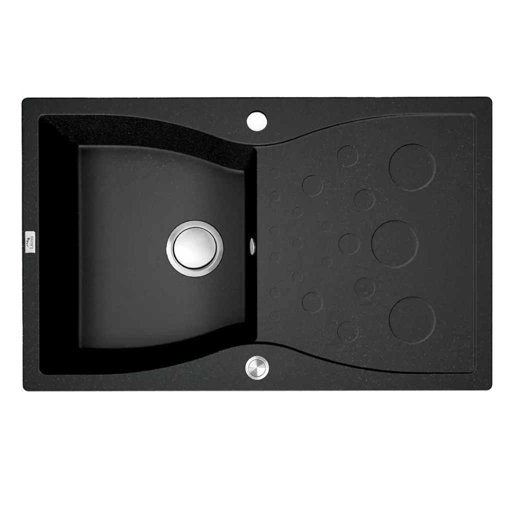 LAVEO MOLOKIN matt fekete gránit mosogató dugókiemelős szifonnal, 80x50 cm