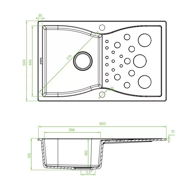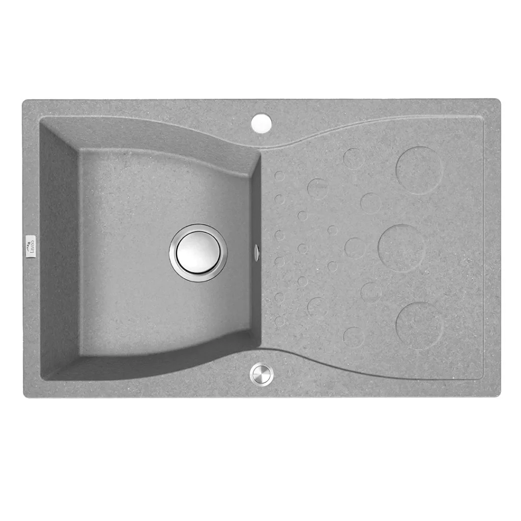 LAVEO MOLOKIN szürke gránit mosogató dugókiemelős szifonnal, 80x50cm