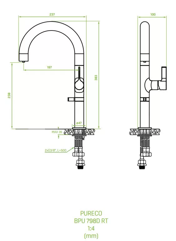 LAVEO PURECO zuhanyváltós matt fekete csaptelep víztisztító csatlakozással