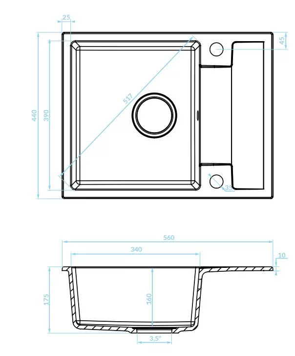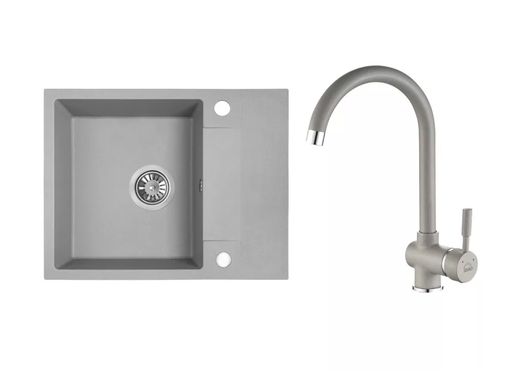 Laveo RAB MINI szürke szett álló csappal, helytakarékos szifonnal