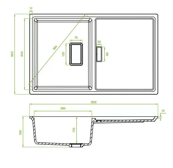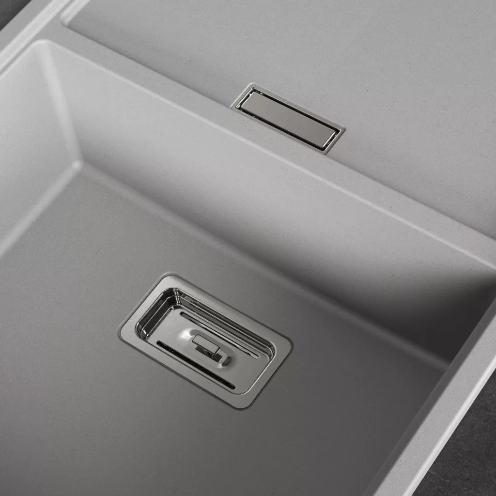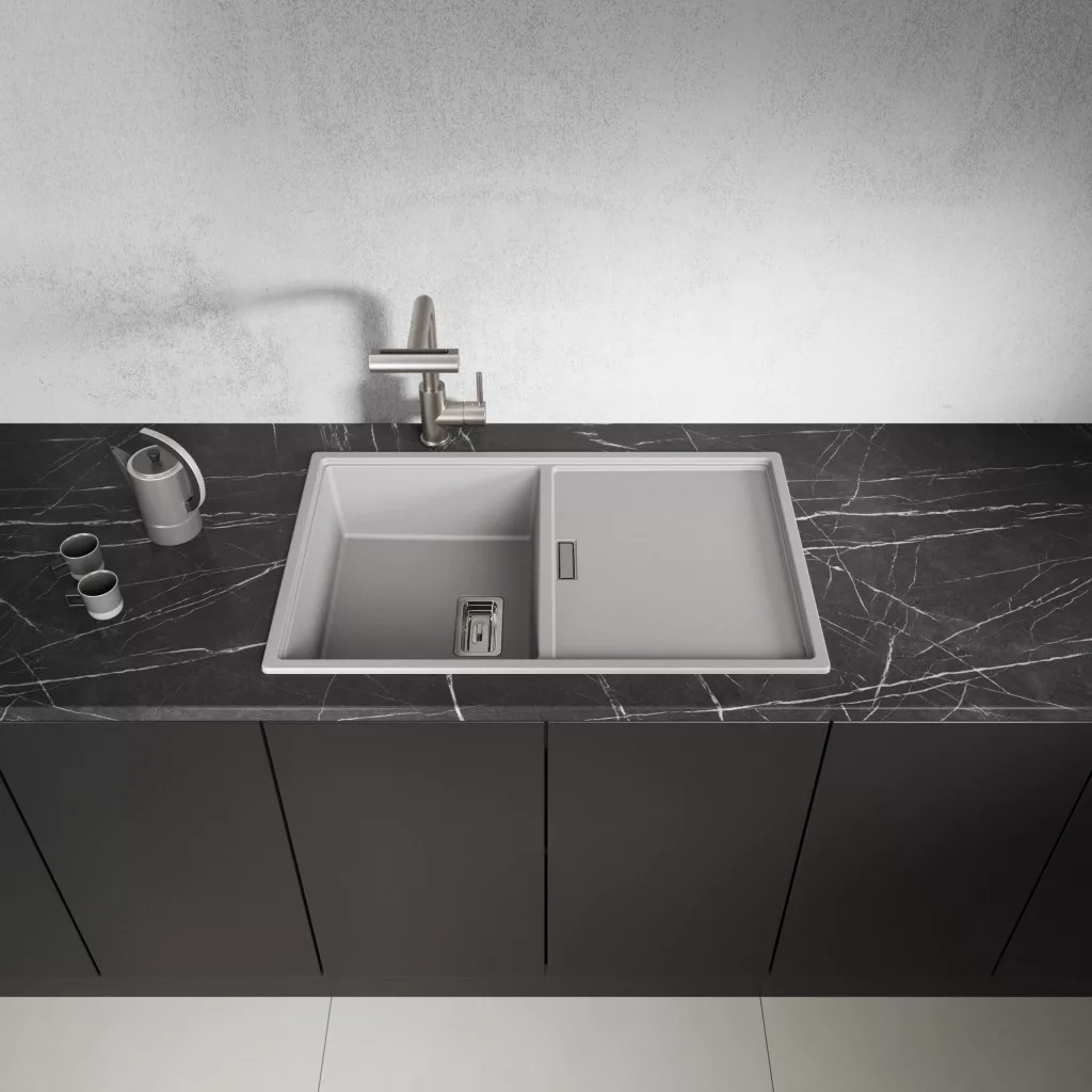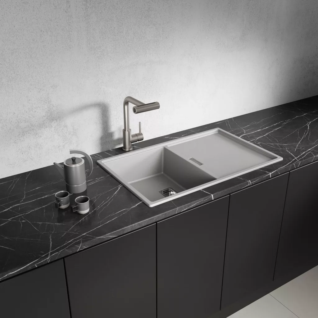 Laveo TONGA szürke csepptálcás gránit mosogató helytakarékos szifonnal