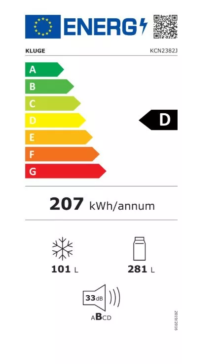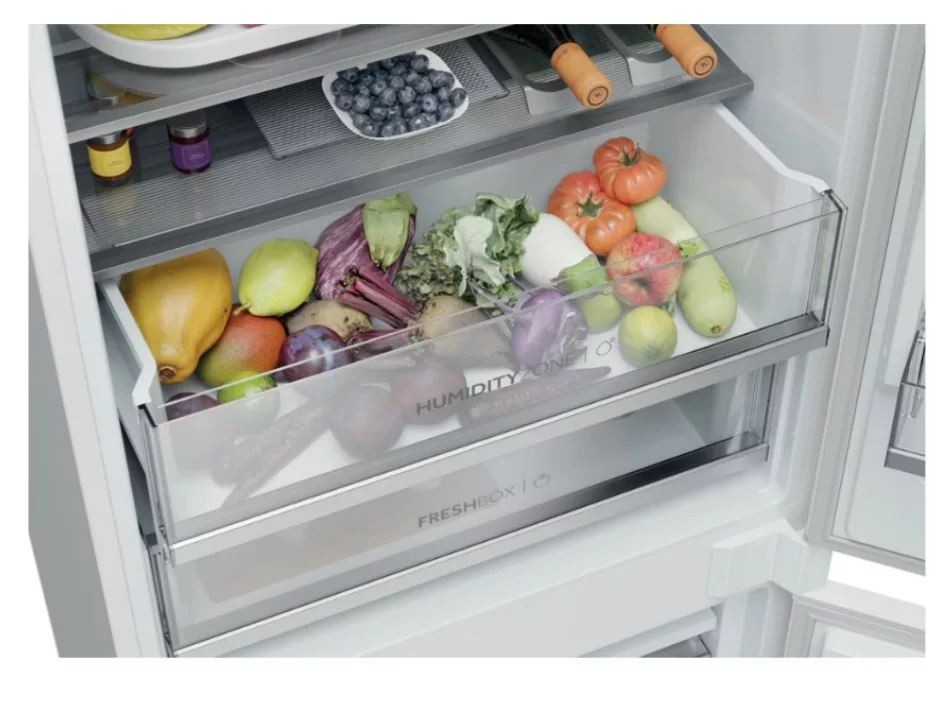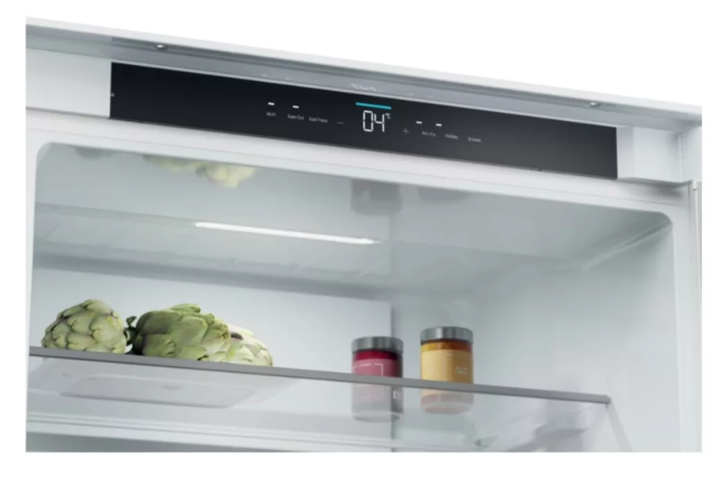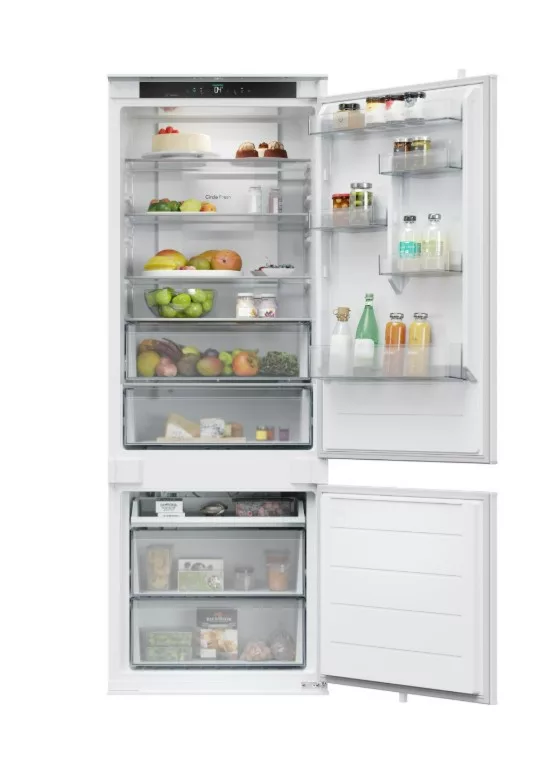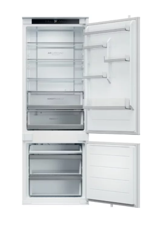 Beépíthető kombinált hűtőszekrény alul fagyasztóval, Total No Frost rendszer, hűtőszekrény/fagyasztó nettó térfogata: 281 L / 101 L, páratartalom zóna, érintőképernyős kijelző, beépítési sínek a konyhaszekrénybe, belső LED világítás, elektronikus hőmérsékletszabályozás, extra funkciók: Holiday, SmartCool - Intelligens hűtés, gyorshűtés, fagyasztókapacitás 8 kg/24 óra - Gyorsfagyasztási idő 8 óra, D energiaosztály, zajszint 33 dB(A), éves energiafogyasztás: 216 kWh, méretek (Ma x Szé x Mé): 193,5 x 69 x 55 cm Termékinformációs adatlap: https://www.elmaxstore.eu/files/KCN2382J_IL_CS.pdf